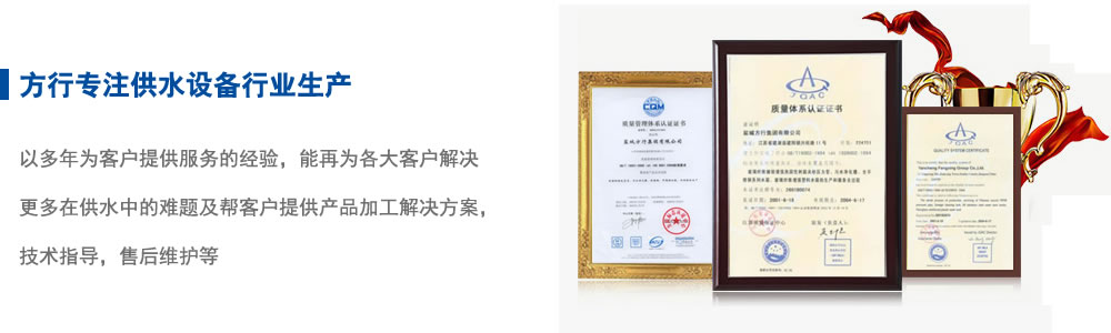 鹽城方行集團有限公司創建于一九七七年,四十多年來,在各級領導、國家行業協會和大專院校的大力支持幫助下,現已發展成為一家集研發、設計、生產、銷售、安裝、服務于一體的給排水設備企業。產品優良,注重品牌。本公司先后榮獲“明星企業”、“中國鄉鎮明星企業”、“中國馳名品牌”等榮譽稱號。“方行”牌玻璃鋼夾砂管道、水箱被江蘇省建設廳指定為推廣產品;污水處理設備被專家評定為國家級新產品;方行牌玻璃鋼夾砂管道、玻璃鋼貯罐、一體化預制泵站、生活、消防箱泵一體化、污水處理設備、玻璃鋼水箱、不銹鋼水箱等產品先后被評為鹽城市名牌產品,江蘇省優質產品,江蘇省名牌產品。公司技術和售后服務日臻完善。在同行中享有很高的知名度、美譽度。以信為本,廣拓業務。本公司始終恪守“持之以恒、誠信為本”的經營宗旨,持續發揚自強不息,順勢而上,趨利避弊,不斷推動產品發展,為我國的給排水工業,為我們的民族工業品牌的發展而做出自己的貢獻。堅持革新,與時俱進。公司一貫跟隨社會的發展堅持不斷革新、嚴謹規劃、精益求精的質量方針。公司著重于環保新技術及給排水設備的創新研發,已擁有多項國家專利技術。 |